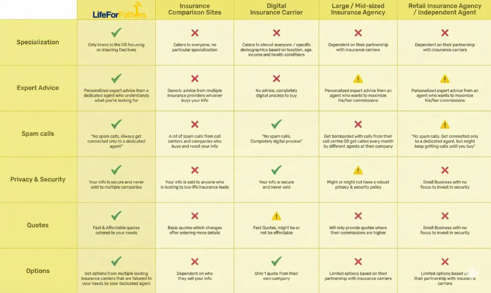 Most fathers pay between $30-$80 per month for a $500,000 policy, depending on age and health. That's about $1-3 per day - less than your daily coffee. Get a free quote to see your exact rate.
